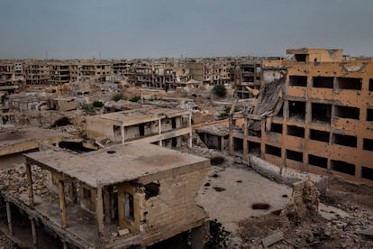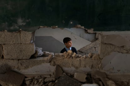 Ibarra Sánchez —- Piedefoto —- Rawan Shogri, un professeur syrien, enseigne à Mohamed à l'école lorsque Najjar al Naal, récemment réhabilité par l'UNICEF, à Douuma, en Syrie, le 6 avril. Shogri déclare: « Nous sommes détruits par la situation de nos élèves. La qualité de l'éducation a chuté considérablement ». « Diego Ibarra SánchezUne image défigurée de l'ancien président Bachar l'Asad à la périphérie de Tartús, en Syrie, le 10 avril. Depuis le licenciement d'El Asad en décembre, les symboles – voitures, publicité et statues de statues – qui étaient auparavant courantes dans tout le pays ont été démontées ou défigurées. Ces symboles, communs dans les bâtiments gouvernementaux, les fenêtres de taxi, les sites commerciaux et historiques, étaient des outils qui renforçaient le contrôle du régime.Diego Ibarra SánchezDeux écoles ont réduit les débris dans le quartier de Jobar, à Damas, le 6 avril depuis 2011, 7 000 centres éducatifs ont été détruits. De nombreux enfants syriens récemment déplacés et dans une situation d'extrême vulnérabilité n'ont jamais marché dans une salle de classe.Diego Ibarra SánchezAya, un élève de troisième année, se rend à l'école temporaire du camp de Zahouria, à Homs, le 8 avril. Il est passé d'un camp à l'autre tout au long de sa vie et, avec le soutien de l'UNICEF, a accepté le système éducatif pour la première fois.Diego Ibarra SánchezUne école détruite à Douuma, à l'image du 6 avril. Les écoles qui travaillent encore le font, dans de nombreux cas, dans des conditions extrêmes: avec des enfants bondés et sans meubles, manuels, eau potable ou assainissement.Diego Ibarra SánchezMohamed Al Khalaf, dépeint le 10 avril à Latakia. Sa petite sœur, Rahaf Louay Al Khalaf, est décédée dans une explosion causée par un artefact sans faire exploser le 15 mars.Diego Ibarra SánchezBasima, 11 ans, devant sa maison, dans une zone rurale de Damas, le 7 avril. Après avoir assisté à une séance de sensibilisation sur des artefacts explosifs sans faire exploser, Basima a convaincu son frère cadet, Kassem, pour se débarrasser d'une collection de capuchons qui avaient ramené à la maison.Diego Ibarra SánchezMohamed Al Kadri, 11 ans, à l'école lorsque Najjar à Naal, à Douuma, en Syrie, le 6 avril. « Mon rêve pour l'avenir est de devenir architecte », dit-il. Diego Ibarra SánchezZain, 13 ans, joue les échecs le 9 avril à Latakia, en Syrie, avec le coordinateur du programme mosaïque, lors d'une visite à domicile dans le cadre de sa réadaptation psychologique. Zain a perdu trois doigts et a une blessure oculaire en raison de l'explosion d'un artefact sans faire exploser. 3Diego Ibarra SánchezMohamad parcourt les tunnels de Jobar, qui était utilisé pour transporter des civils en ambulance pendant la guerre. De 2012 à 2018, le quartier est devenu un bastion de l'opposition et a enduré les années de siège. Les bombardements ont détruit 93% de leurs bâtiments. Diego Ibarra Sánchez